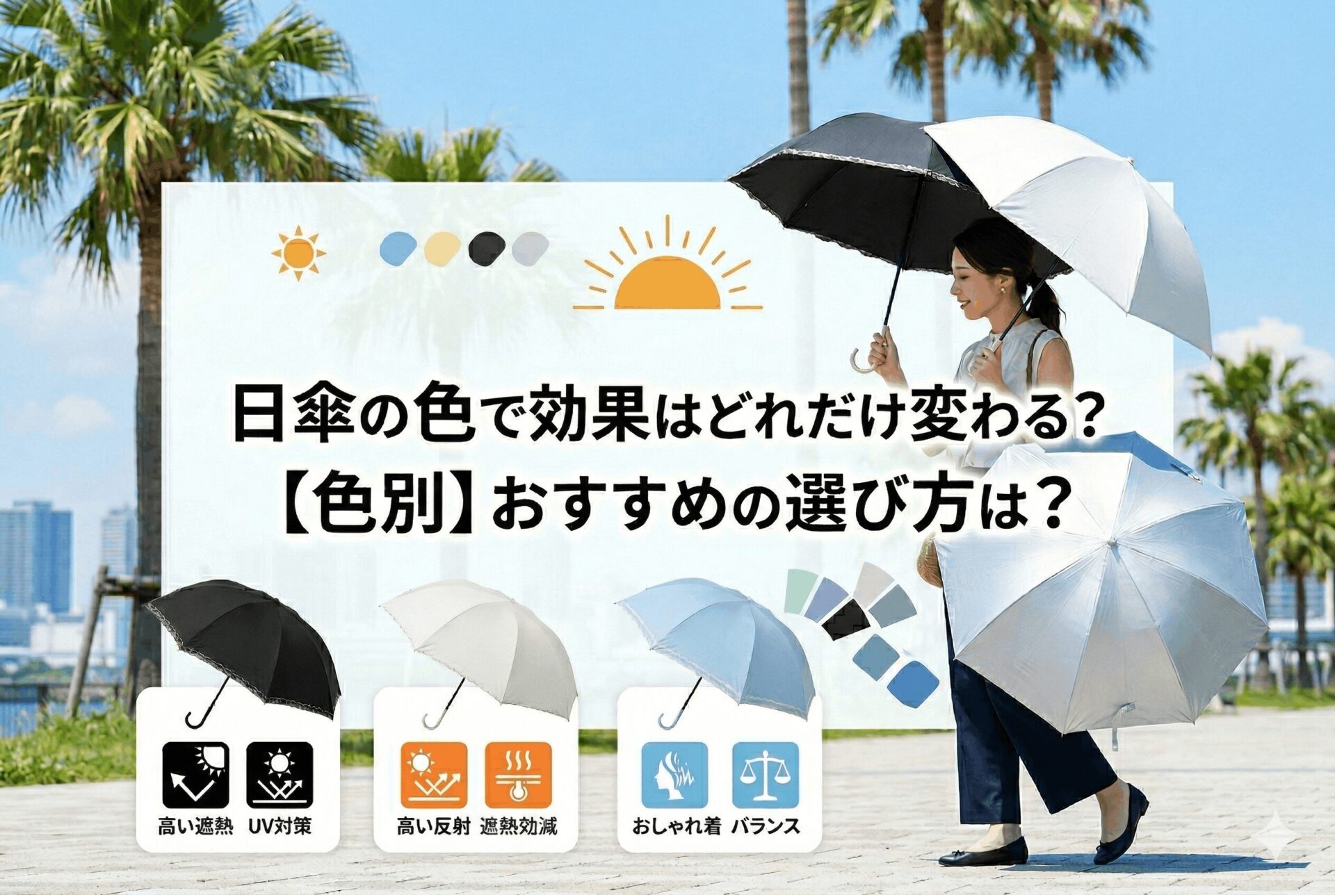 結論から言うと、日傘の色はUVカット・遮熱の効果に大きく影響します。